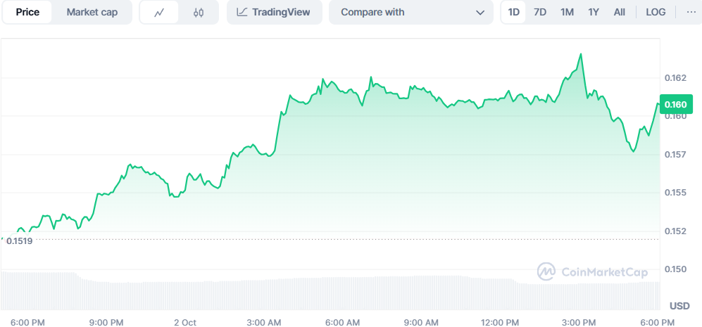 At the time of writing, PYTH trades at $0.159, holding above its 7-day SMA ($0.148) and 30-day EMA ($0.155). The RSI (55.54) sits in neutral-bullish territory, while the MACD histogram (-0.00143) shows bearish pressure easing.