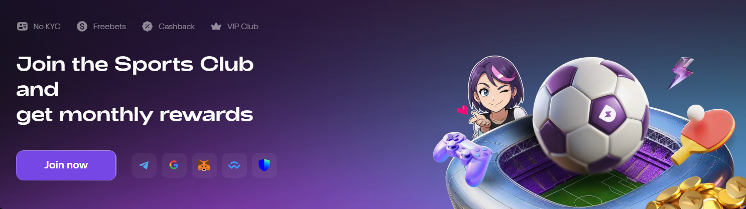 Registration is available via email, Telegram, or a direct DeFi wallet connection through MetaMask or Trust Wallet. The wallet-connect option is particularly relevant for European users who want zero overlap between their gambling activity and their personal identity — the platform never handles your name, address, or financial history. Deposits and withdrawals are processed across 40+ cryptocurrencies on 20 different blockchain networks, fee-free and in real time. There is no bank involved at any stage.
